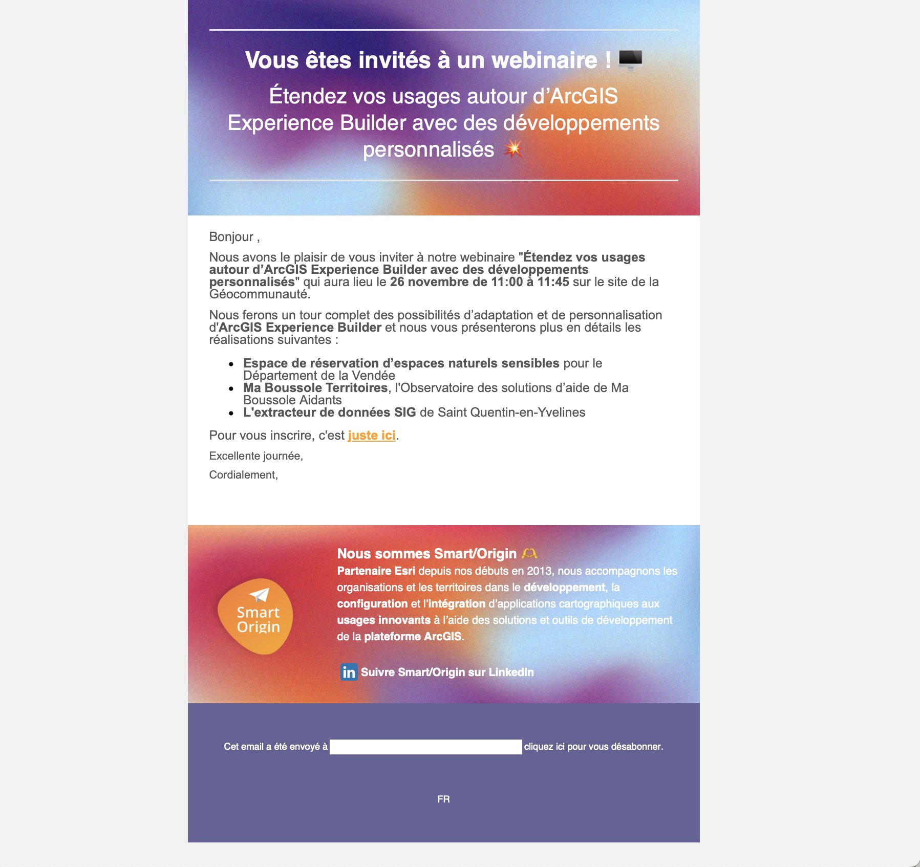 - [🇫🇷][30 min] Développer des widgets personnalisés avec ArcGIS Experience Builder : retour d’expérience — [ref.]