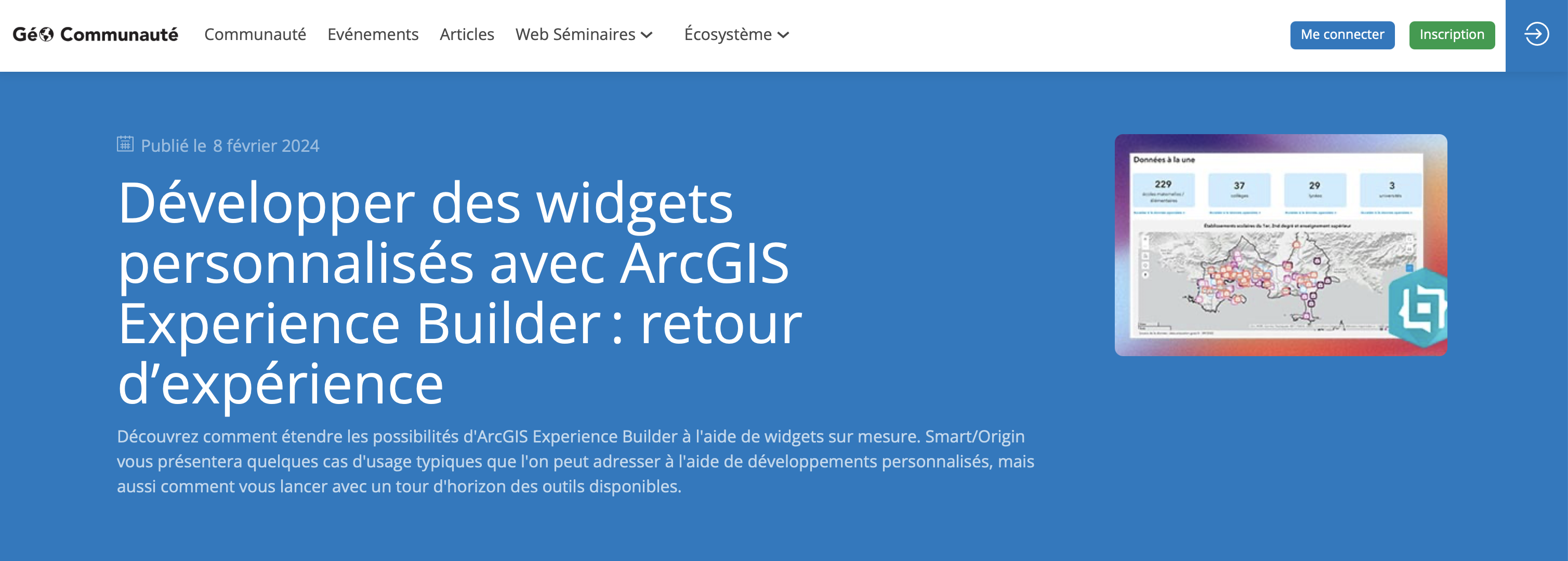 - [🇫🇷][45 min][2024/02/08] Développer des widgets personnalisés avec ArcGIS Experience Builder : retour d’expérience — [ref.]